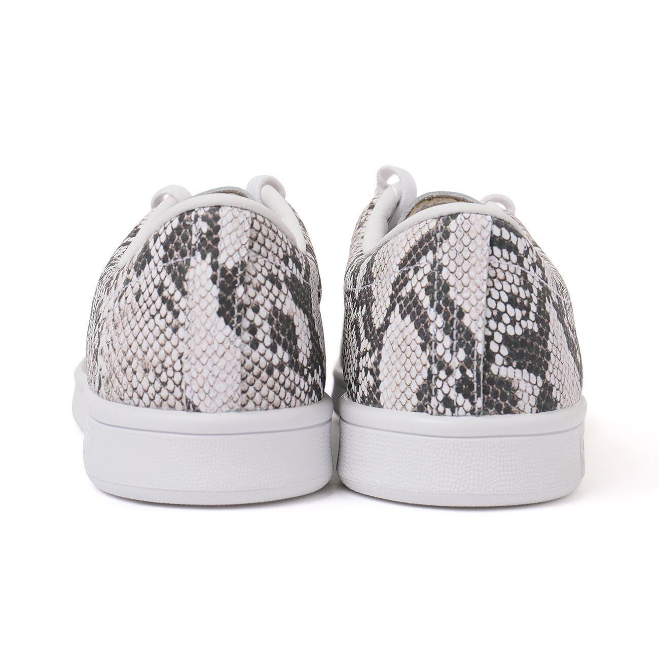 シンプルアンドクリーンのコンセプトの下、名品スタンスミス(STAN SMITH)の前身であるハイレット(HAILLET)に、ハイクとのコラボレーションのブランディングラベルを中敷きとシュータンの裏側に施した。アッパー全体をパイソン柄で覆った存在感のあるデザイン。